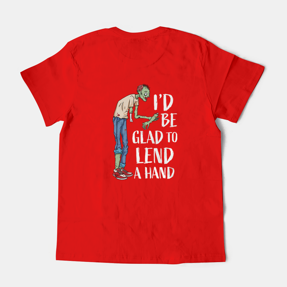 This humorous shirt that features a zombie extending his help to you. Lending a hand? He got you! This is a special edition design for Halloween 2023.