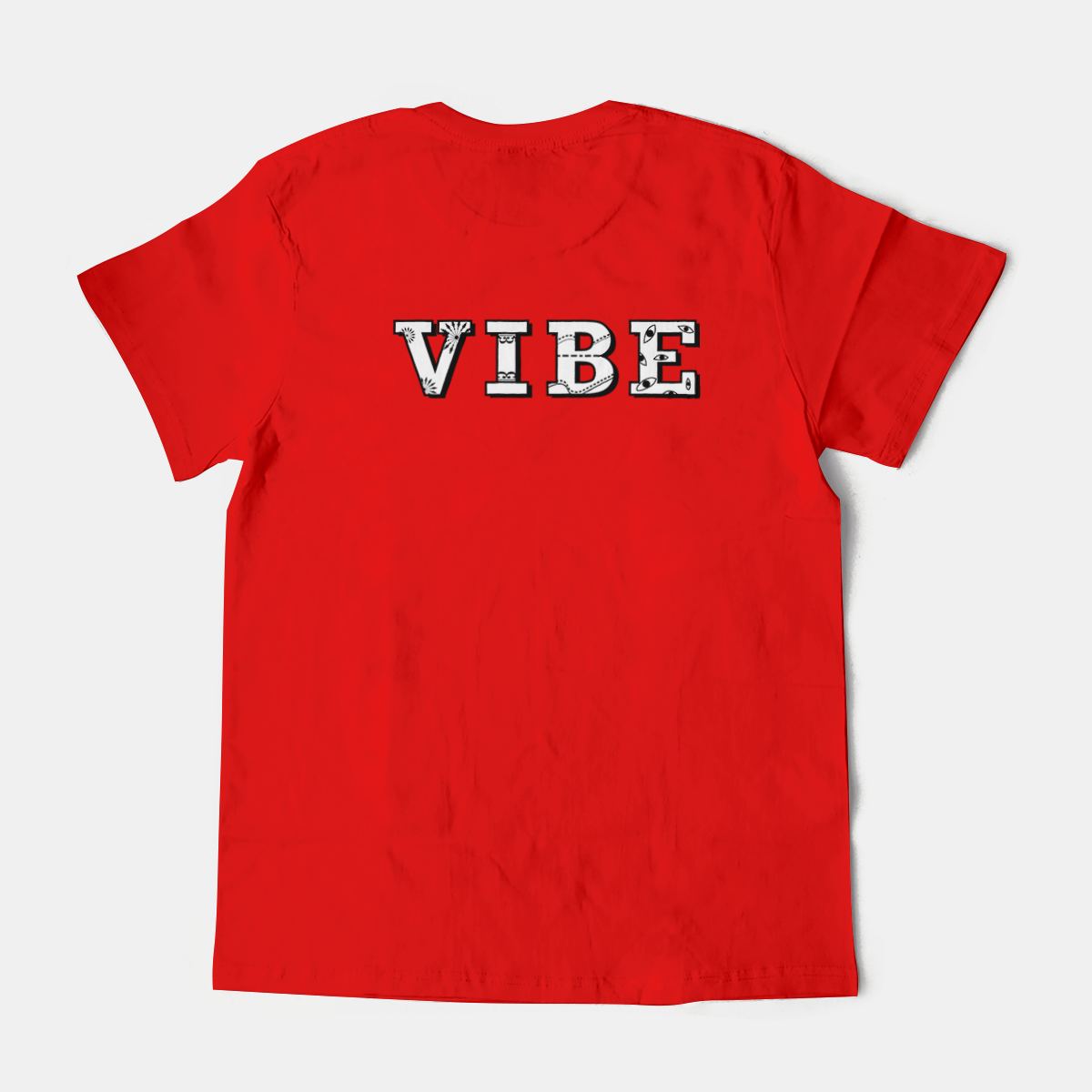 Black and white 'VIBE' word with different pattern on each of the letter.